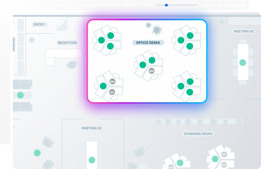 Reserve and assign desks, book meeting rooms and resources, welcome visitors, and track space utilization—all on the most powerful space management platform.