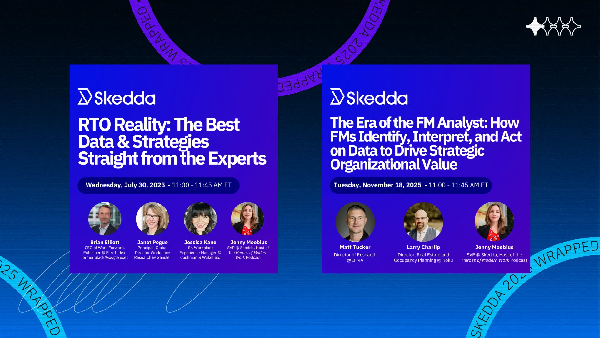 Whatâs the hype: This yearâs webinar series brought the Skedda community together like never before, with over 1,000 attendees tuning in to stay ahead of the shift toward data-driven workplace strategies. From deep dives into Skeddaâs most powerful features to practical guidance on booking, managing, and optimizing spaces in the era of flexible work, you were part of the discussion on aligning actionable insights with todayâs demand for smarter, more adaptive workplaces.