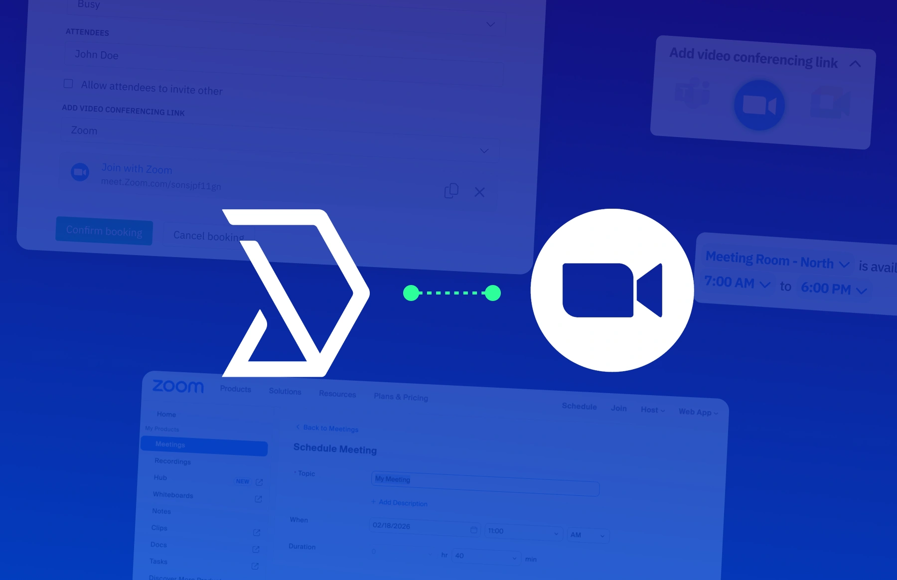 Add Zoom to any Skedda room booking in one click, with automatic meeting creation and calendar sync.