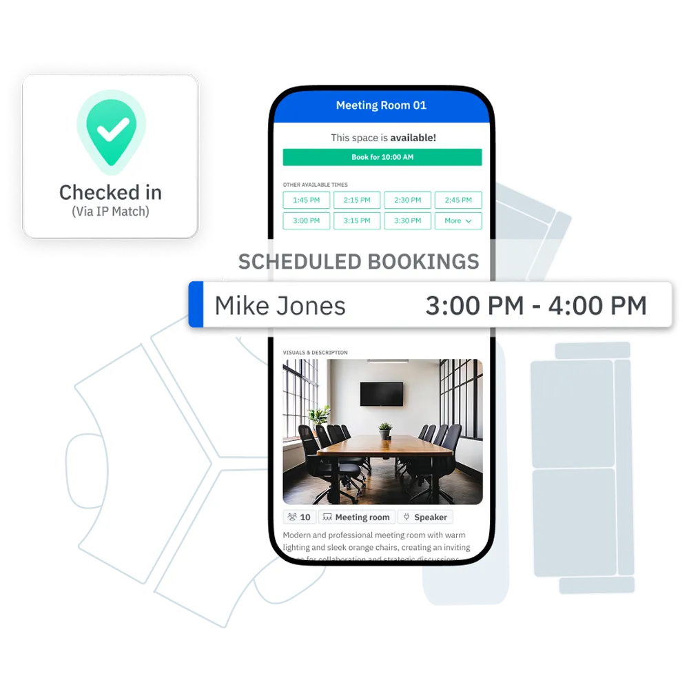 Give teams frictionless bookings while you get verified occupancy data. Auto check-in via the Skedda app turns network presence into reliable insights.
