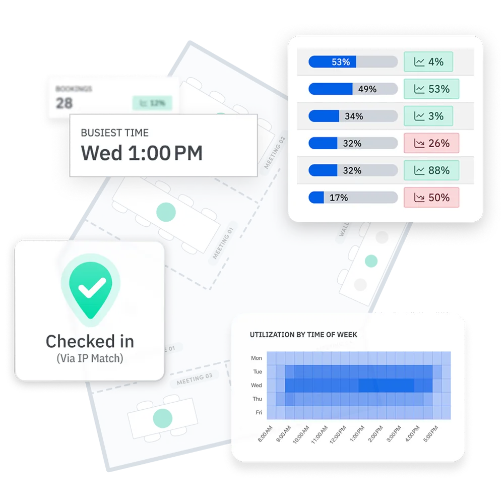 Obtenez des informations et des analyses exploitables sur l'utilisation de l'espace et de l'espace de travail des employés.
