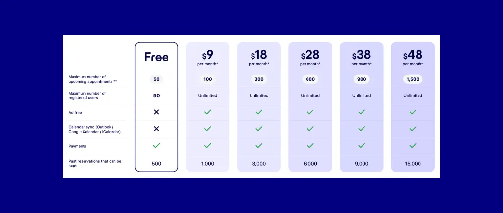 - Per-appointment (SuperSaaS) is cheap but caps at low volumes