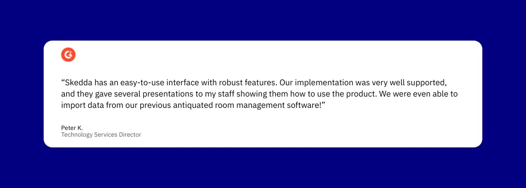 Skedda's plans include custom floor plan delivery and full booking setup (with no setup fee). Reviewers describe the setup as complete within a day. Accruent EMS and HubStar require implementation consulting—time-to-value ranges from weeks to months.